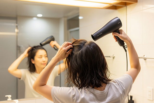 根元→中間→毛先の順で乾かすと、効率よく髪を乾かせます。